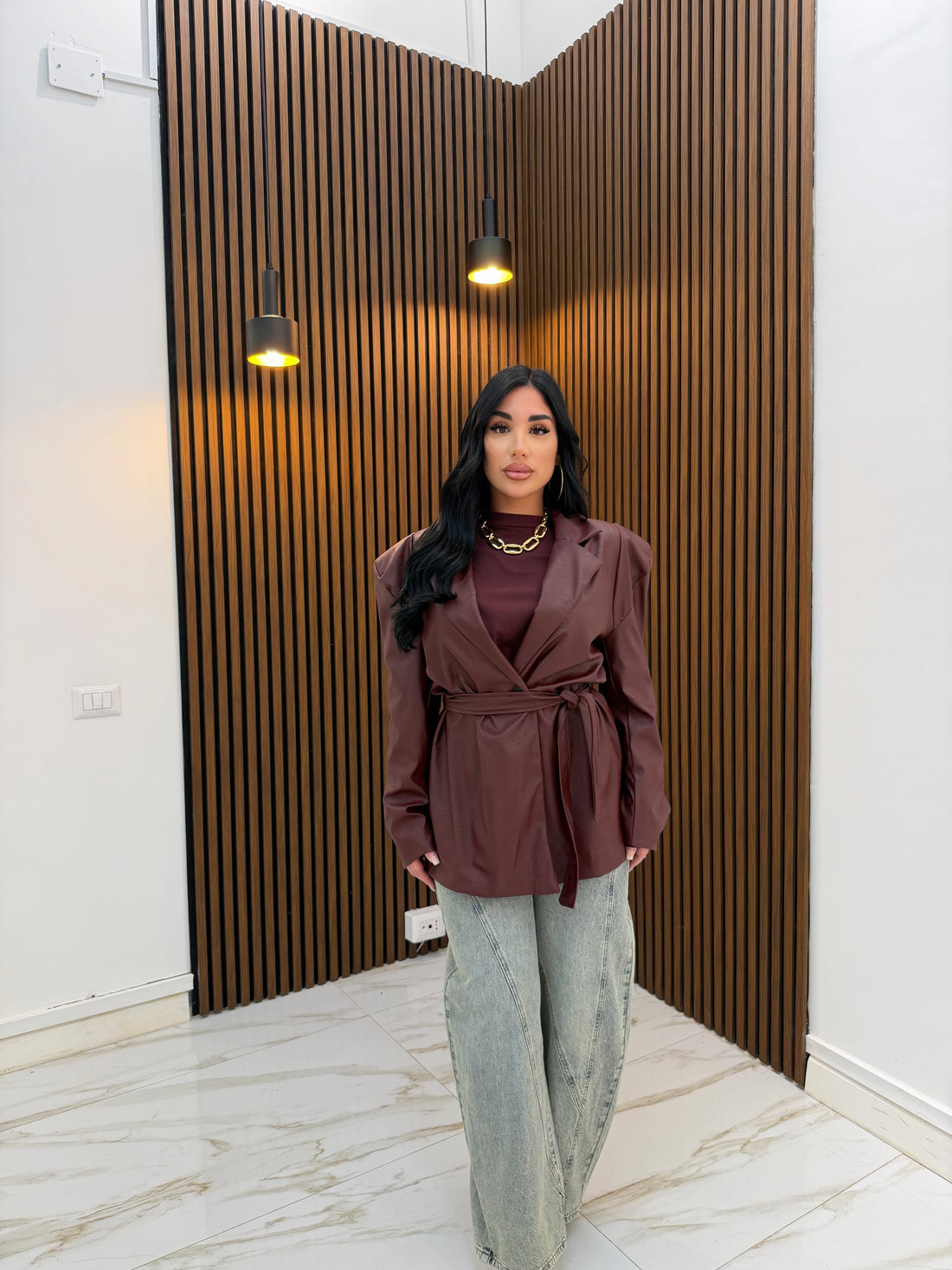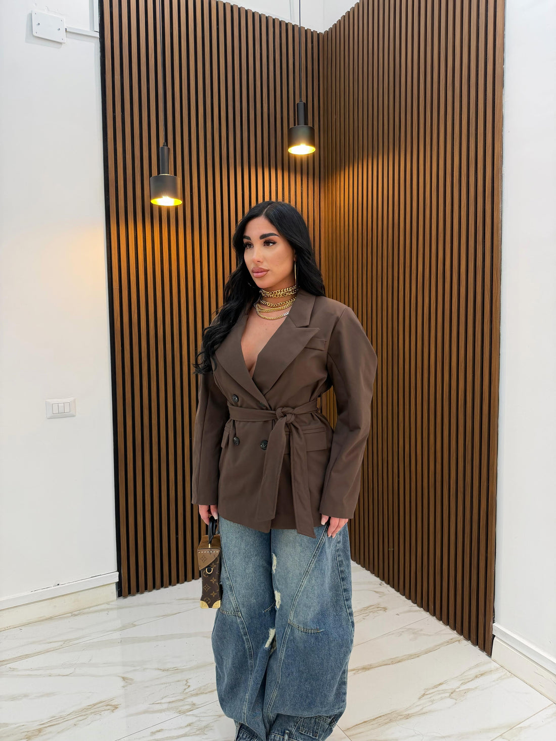 GIACCA MANICA A SBUFFO MARRONE